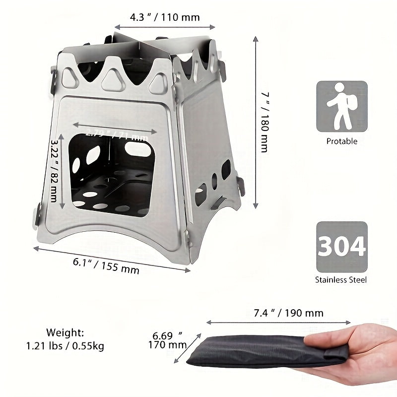 Outdoor Fireplace 3-in-1 Folding Heating Stove | Stainless Steel Portable Fireplace for Beach/RV/Hiking | Portable Design, 0.55kg